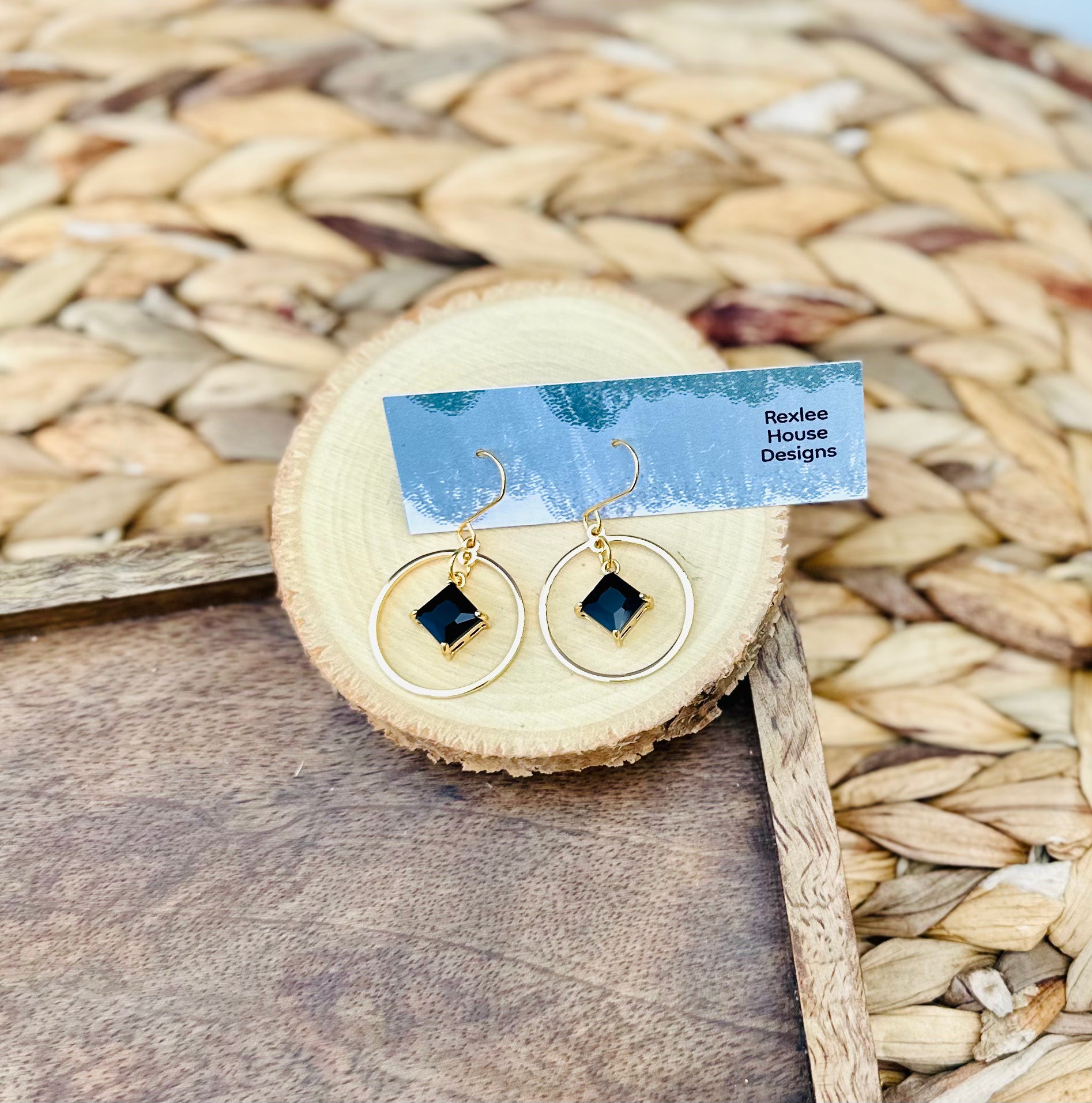 These hoops add a pop of color to any outfit with their black glass charm, while the gold stainless steel adds a touch of elegance. With a 1.5 inch hang length, they're the perfect size for everyday wear. Get ready to rock these Black & Gold Hoops!