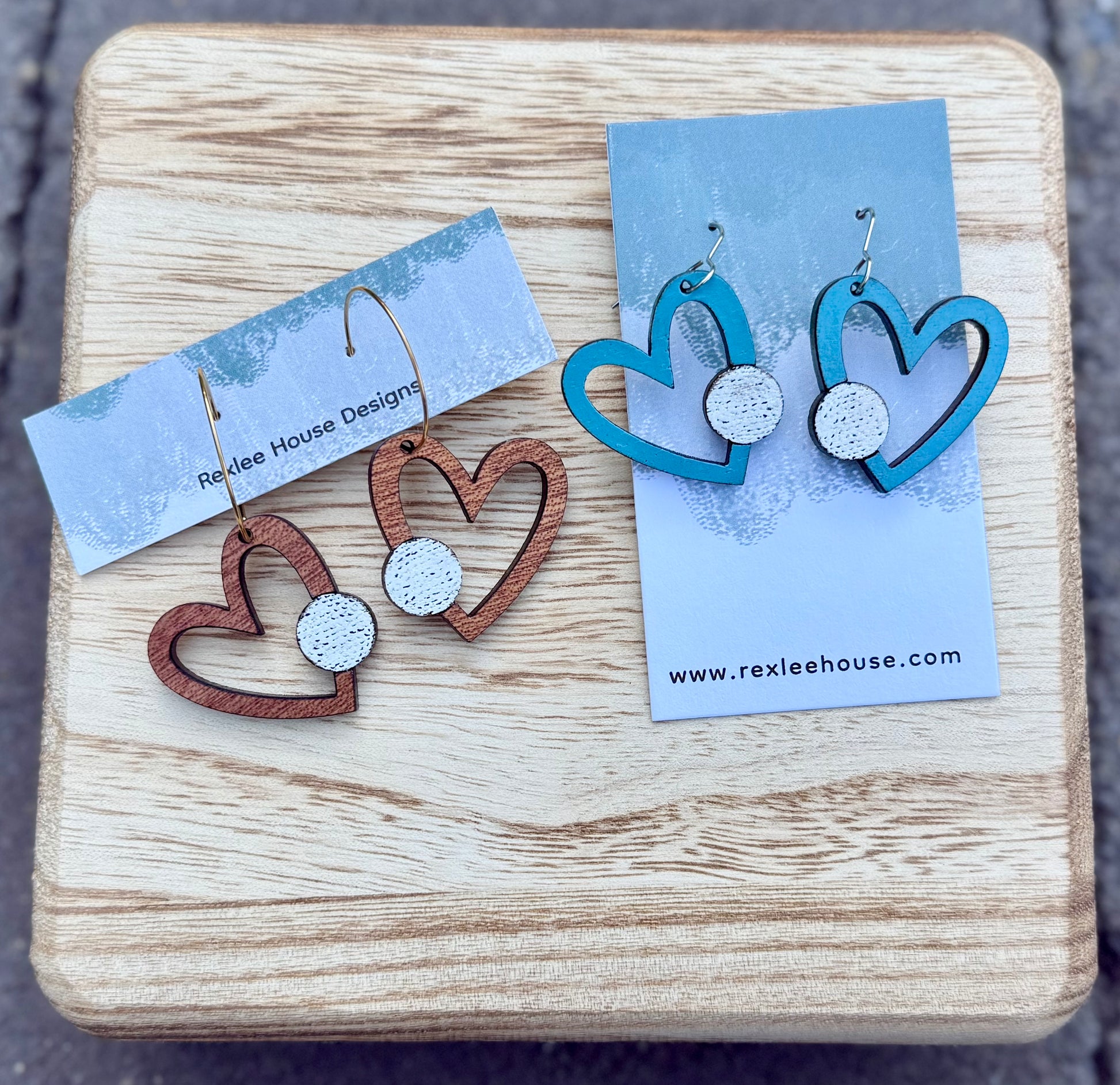 These charming 1.25-inch wood heart earrings feature a golf ball accent, hand painted in your choice of color for a personalized touch. Each heart is suspended from a sleek half-inch stainless steel hoop, combining sporty fun with a unique, handcrafted style perfect for game day or everyday wear.